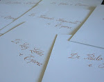 Agora começo a expandir meu trabalho e a aprender novas fontes, cada vez mais o pessoal gosta de usar a mesma fonte do convite no envelope. A primeira que investi tempo para ter a habilidade de reproduzir é uma que as noivas gostam muito. Shelley Allegro.